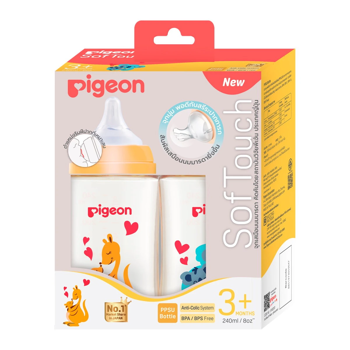 – จุกนมรุ่นใหม่ ผลิตจากซิลิคอนที่อ่อนนุ่มพิเศษที่มีความนุ่มขึ้น สัมผัสเสมือนนมารดามากขึ้น หมดปัญหาเรื่องการสับสนเต้าและจุกนม พร้อมมีเส้นบอกตำแหน่งริมฝีปากที่เหมาะสม พอดีกับสรีระปากทารก