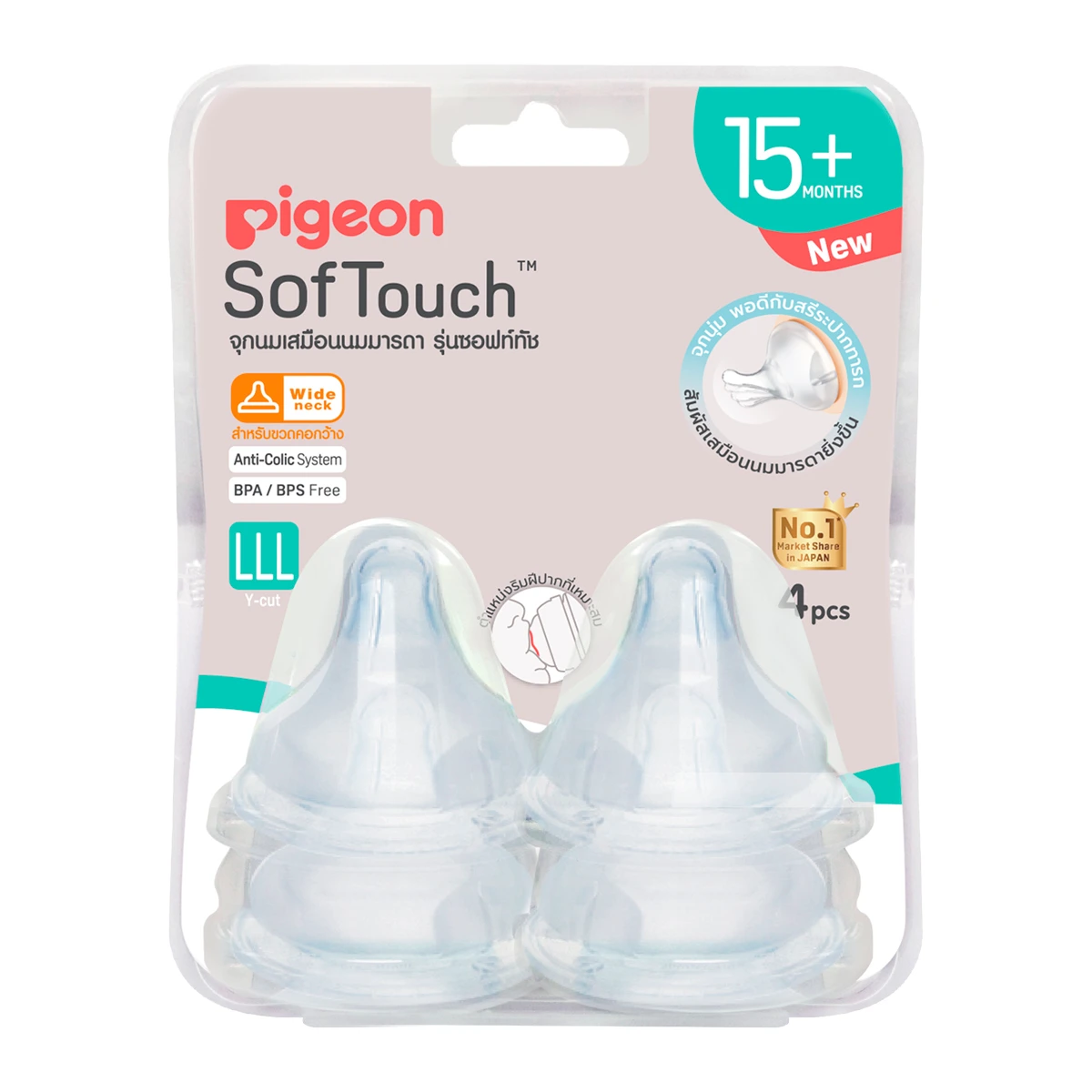 พีเจ้น จุกนมเสมือนนมมารดา รุ่นซอฟต์ทัช ขนาด LLL แพ็ค 4