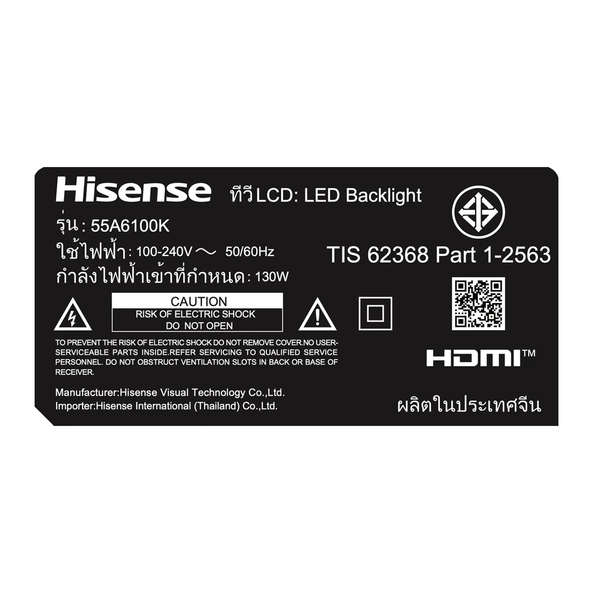 – ไฮเซ่นส์ ยูเอชดี 4K สมาร์ททีวี รุ่น 55A6100K